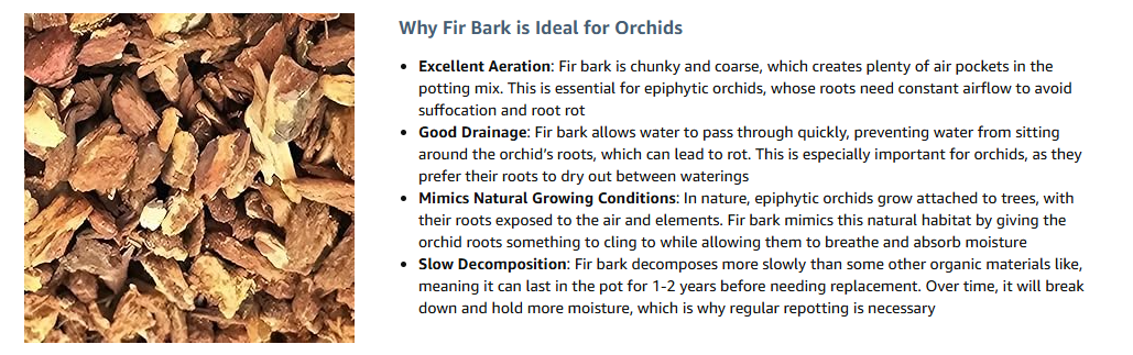 | Soak Before Use | Fir bark can be quite dry when first purchased. It’s recommended to soak it in water for a few hours before using it to ensure it holds some moisture for the orchid. |